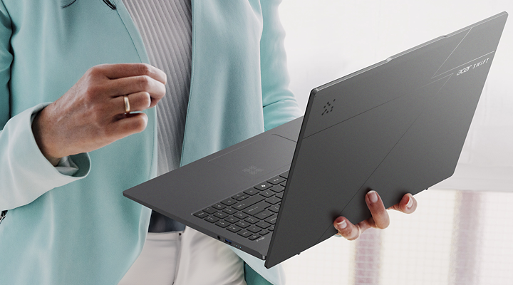 Компютърът с Copilot+ Swift Go 16 AI съчетава безпроблемната мобилност с елегантно изчистен капак с лазерно гравиране, който демонстрира изтънченост навсякъде. Свръхтънък и лек дизайн, който позволява пълно отваряне на 180°, адаптиращ се идеално към всеки стил на работа.