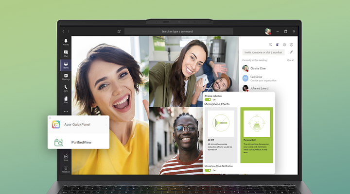 Използваща 3-ти микрофон и потискане на шума с изкуствен интелект, технологията Acer PurifiedVoice™ 2.0 потиска нежелания фонов шум – гарантирайки, че чуваните гласове и говор са изключително ясни и отчетливи.