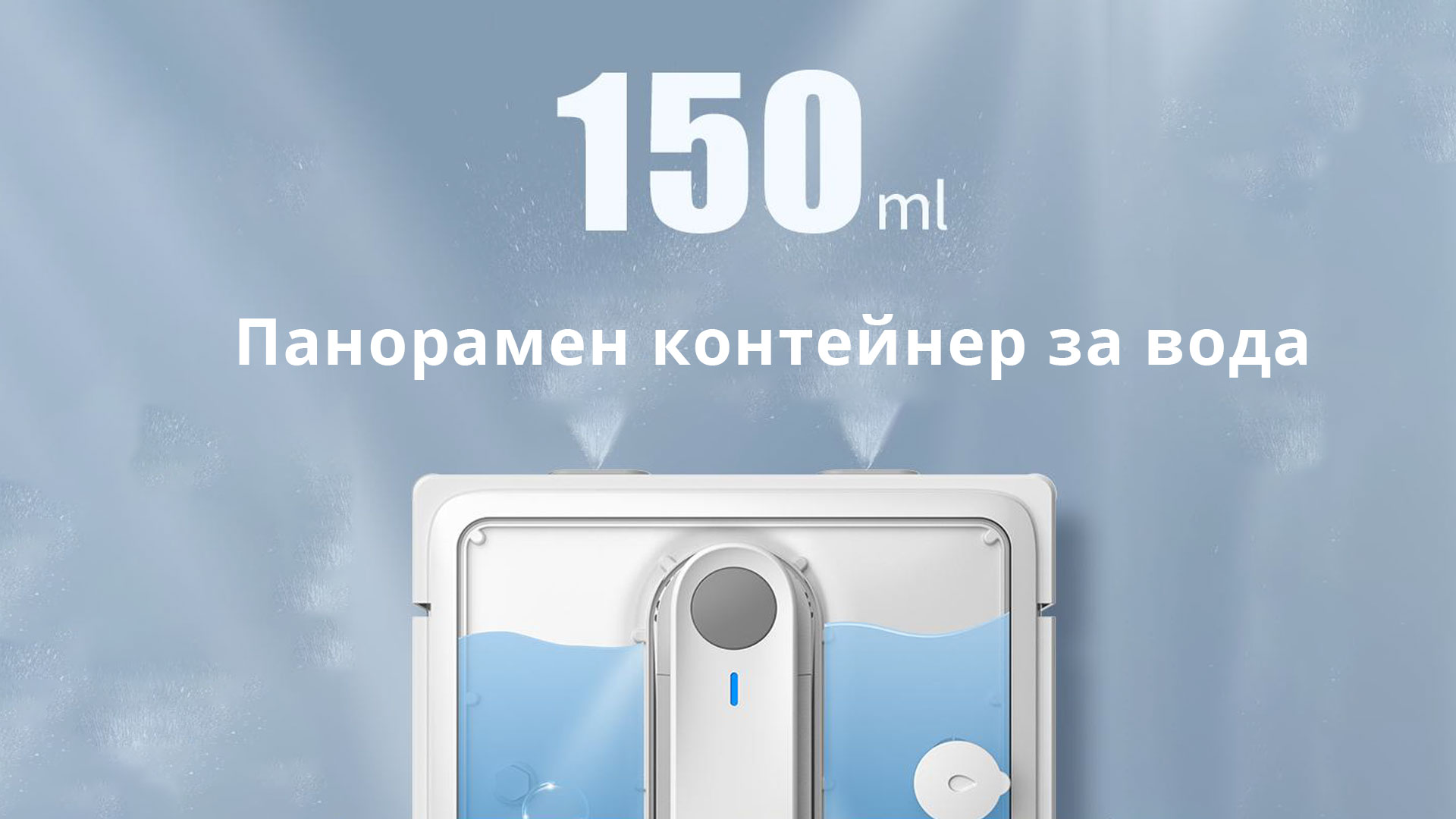 Започвайки с уникалния си дизайн, роботът ще ви впечатли с панорамния си воден резервоар с капацитет от 150 мл, почти двойно по-голям от предходните модели на марката. Това ви позволява да наблюдавате използването на вода в реално време и да се уверите в икономичната ефективност. С едно зареждане, HUTT W9 може да почисти до 90 кв.м повърхност, като използва двойни дюзи.