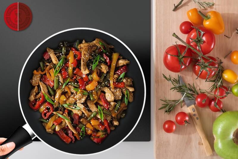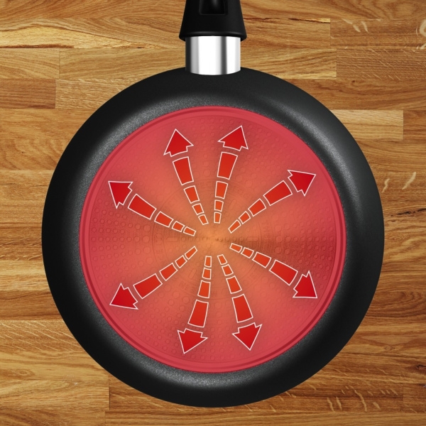 Тиганът е оборудван с иновативна технология Thermo-Signal и е подходящ за всички видове нагряване, включително индукционно.