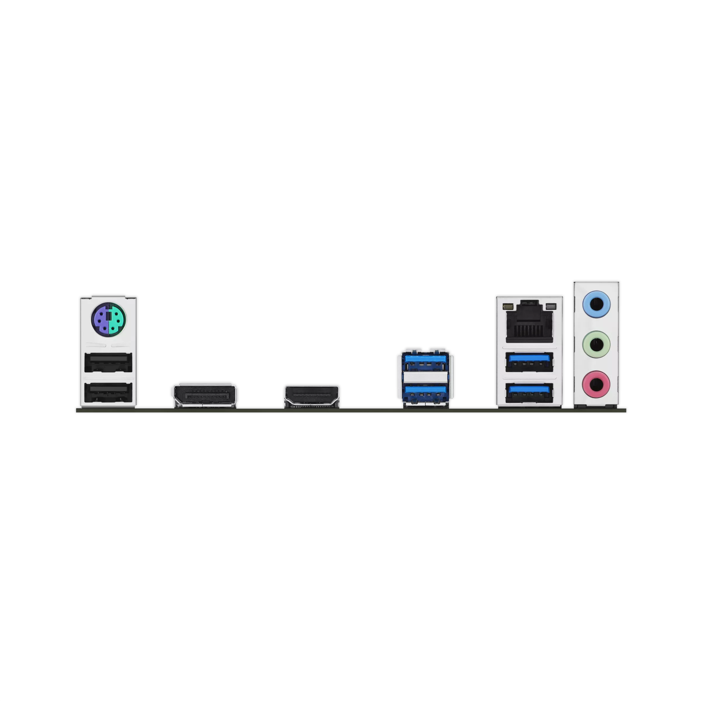 | I/O: | 4 x USB 3.2 Gen 1 (5G) ports (4 x Type-A), 2 x USB 2.0 ports (2 x Type-A), 1 x DisplayPort, 1 x HDMI™ port, 1 x Realtek 1Gb Ethernet port, 3 x Audio jacks, 1 x PS/2 Keyboard/Mouse combo port |