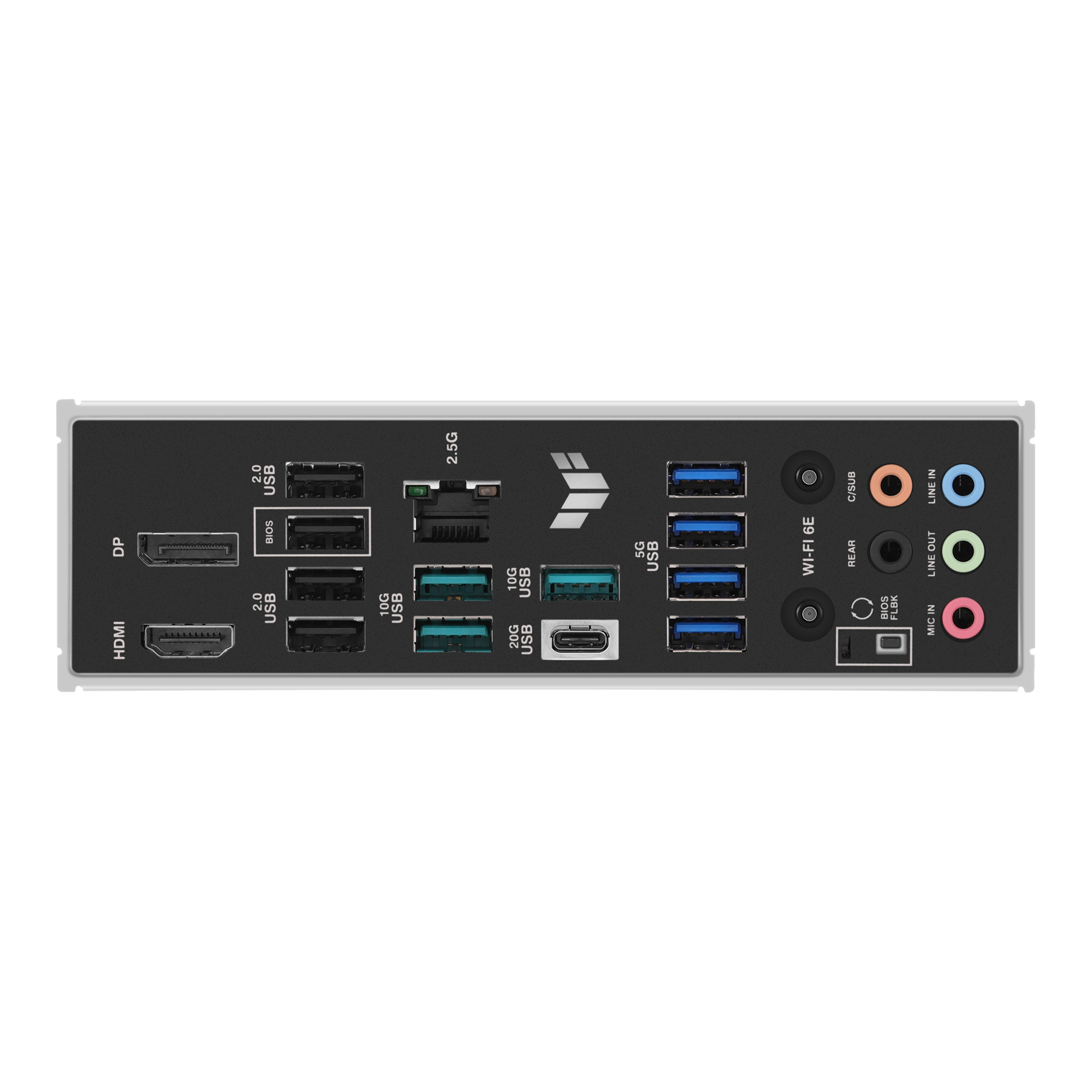 | I/O: | 1 x USB 20Gbps port (1 x USB Type-C®), 3 x USB 10Gbps ports (3 x Type-A), 4 x USB 5Gbps ports (4 x Type-A), 4 x USB 2.0 ports (4 x Type-A), 1 x DisplayPort, 1 x HDMI™ port, 1 x Wi-Fi module, 1 x Realtek 2.5Gb Ethernet port, 5 x Audio jacks, 1 x BIOS FlashBack™ button |