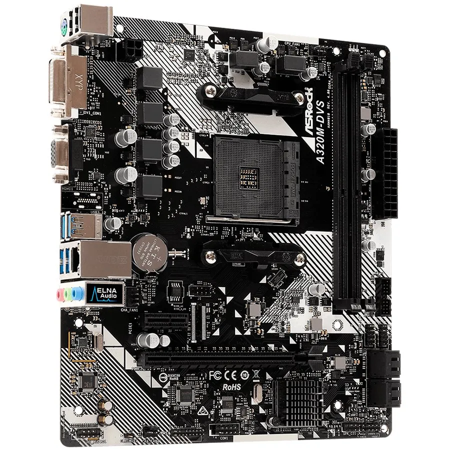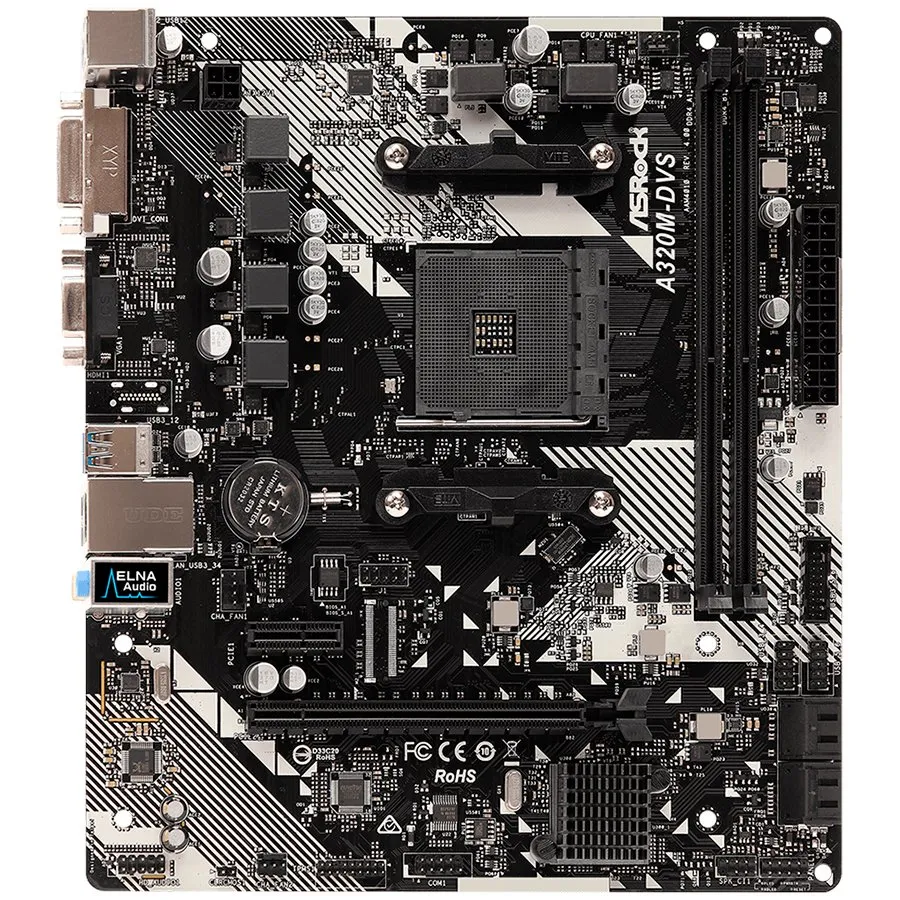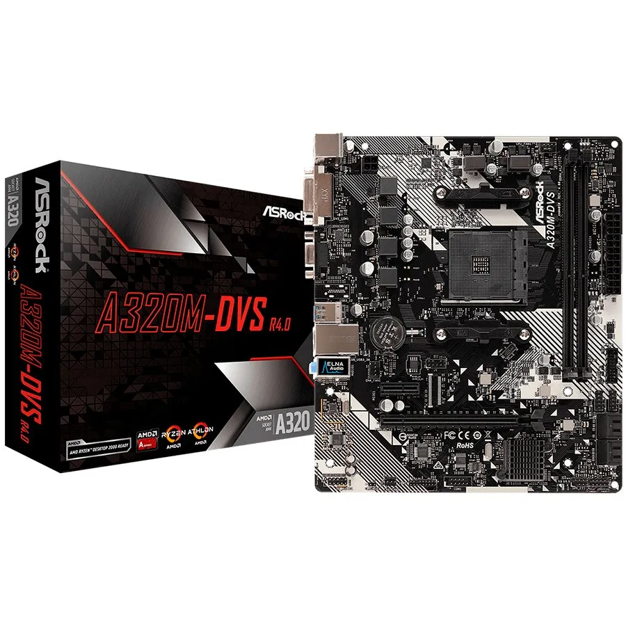 ASROCK Main Board Desktop AM4 A320, 2xDDR4, 1xPCI-E x1, 3xPCI-E x16, DVI-D,VGA, 4 SATA3, 6 USB 3.0 mATX - A320M-DVS-R4.0