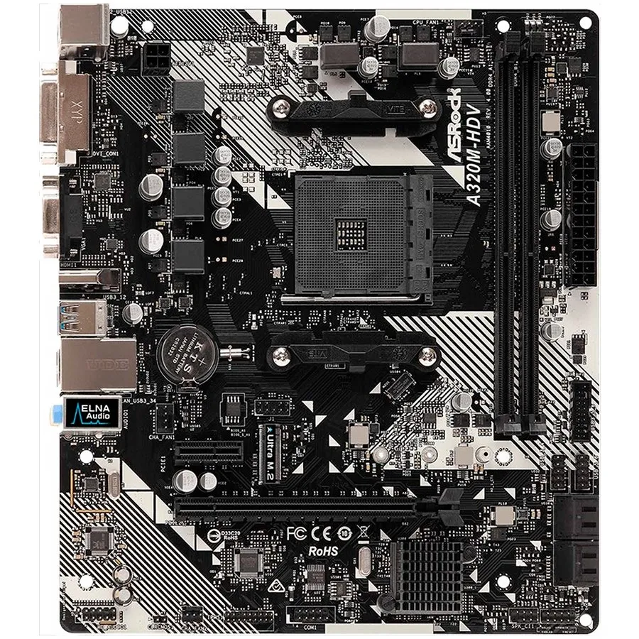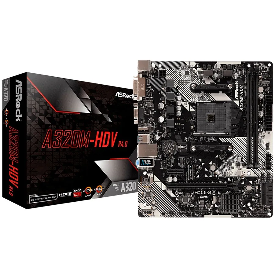 ASROCK Main Board Desktop AM4 A320, 2xDDR4, 1xPCI-E x1, 1xPCI-E x16, HDMI, DVI-D, D-Sub, 4 SATA3, 1 Ultra M. , 6 USB 3.0 (2 Front, 4 Rear) - A320M-HDV_R4.0