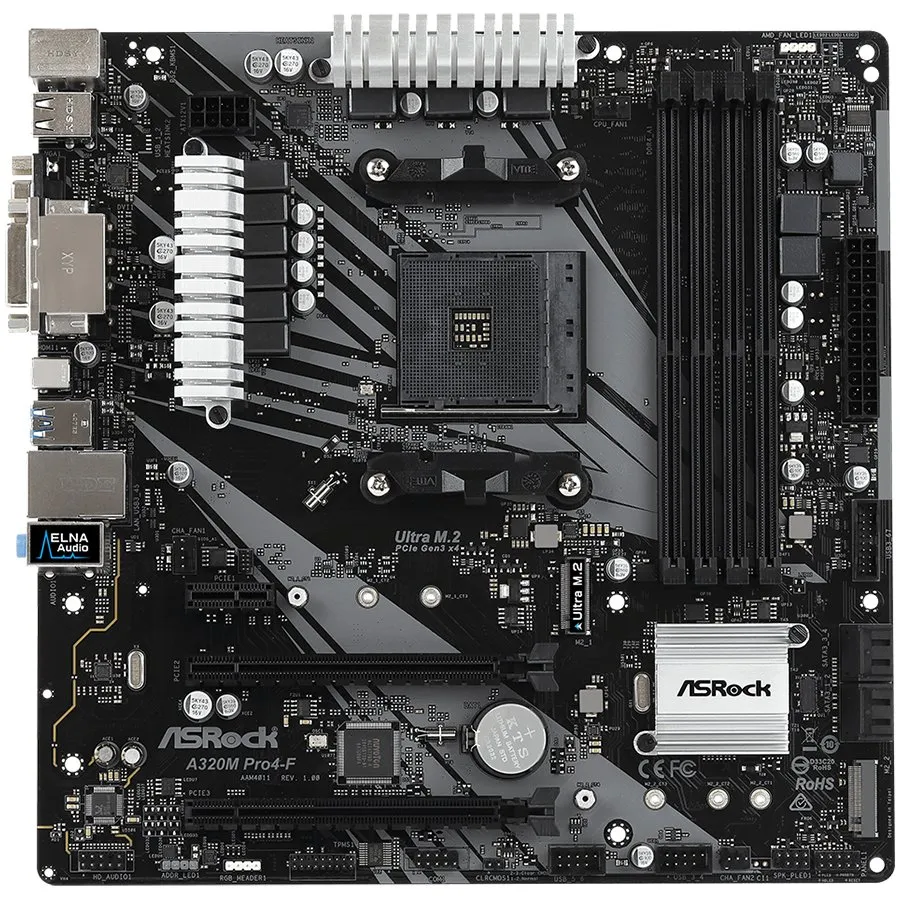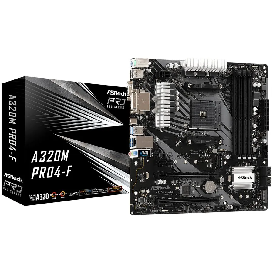 ASROCK Main Board Desktop A320M PRO4-F (AM4, 4xDDR4, 1xPCI-E x1, 1xPCI-E x16, HDMI, DVI-D, D-Sub, 4 SATA3, mATX, retail)