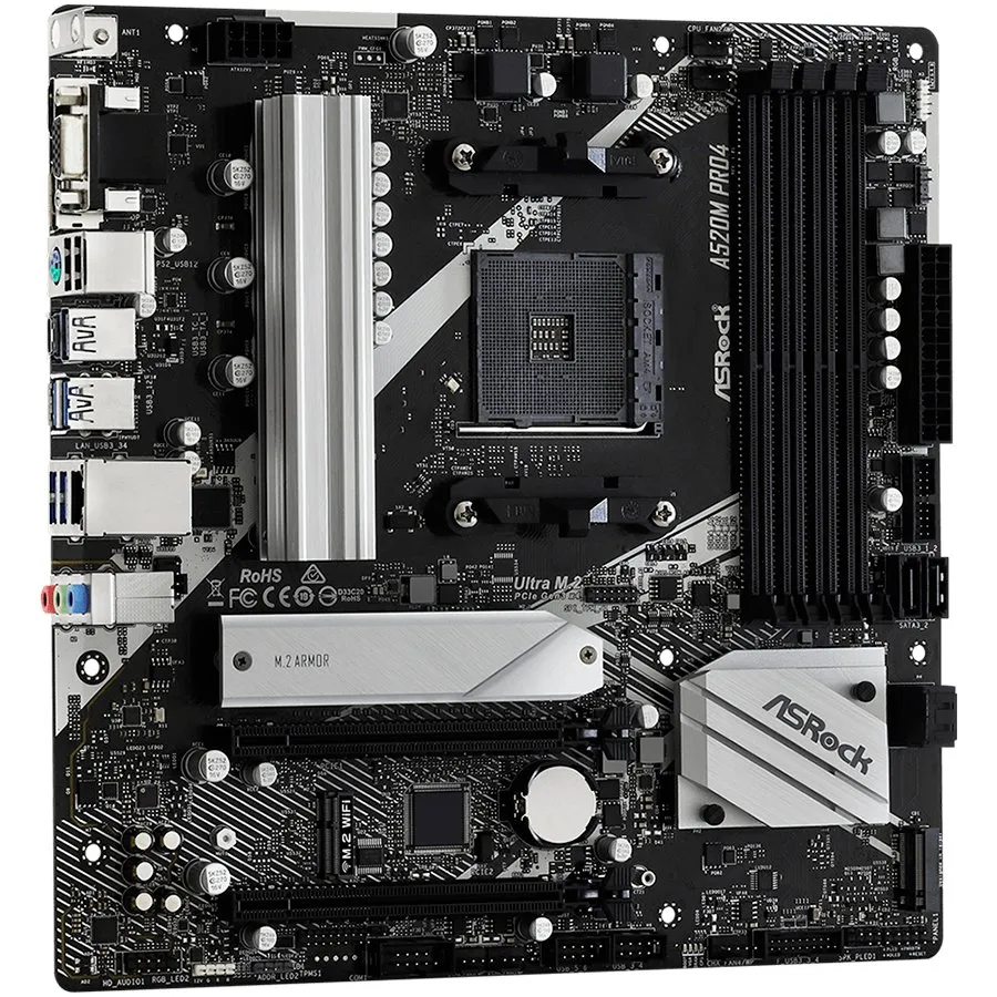 - A520M PRO4/AM4/4xDDR4/128GB MAX/GbLAN/2xPCIE 3.0x16/PCIE3x2/2xM2/4xSATA/1xPS/2