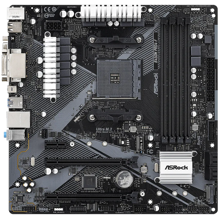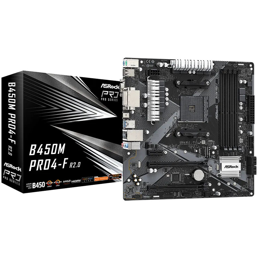 ASROCK Main Board Desktop B450M PRO4-F (SAM4,4xDDR4,1xPCI E 3.0x16,1xPCI E 2.0x16, 1xPCI E 2.0x1, SATA III, Raid, 1xUlraM.2,USB3.0,GLAN, VGA,HDMI,DVI) mATX Retail - B450M PRO4-F R2.0
