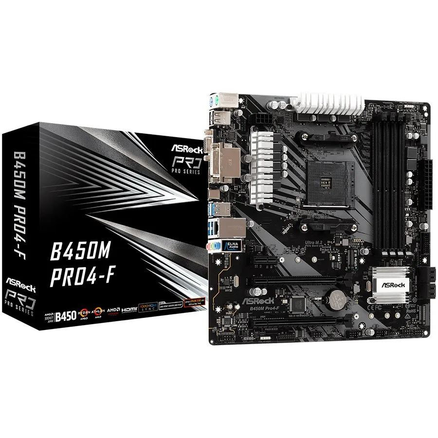 ASROCK Main Board Desktop B450M PRO4-F (SAM4,4xDDR4,1xPCI E 3.0x16,1xPCI E 2.0x16, 1xPCI E 2.0x1, SATA III, Raid, 1xUlraM.2,USB3.0,GLAN, VGA,HDMI,DVI) mATX Retail - B450M_PRO4-F
