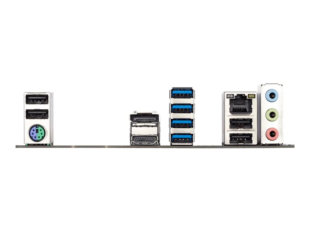 | Interfaces: | 1 x HDMI 1 x DisplayPort 1 x audio line-in - mini-jack 1 x audio line-out - mini-jack 1 x microphone - mini-jack 1 x PS/2 keyboard / mouse 1 x LAN (Gigabit Ethernet) 4 x USB 3.2 Gen 1 4 x USB 2.0 |