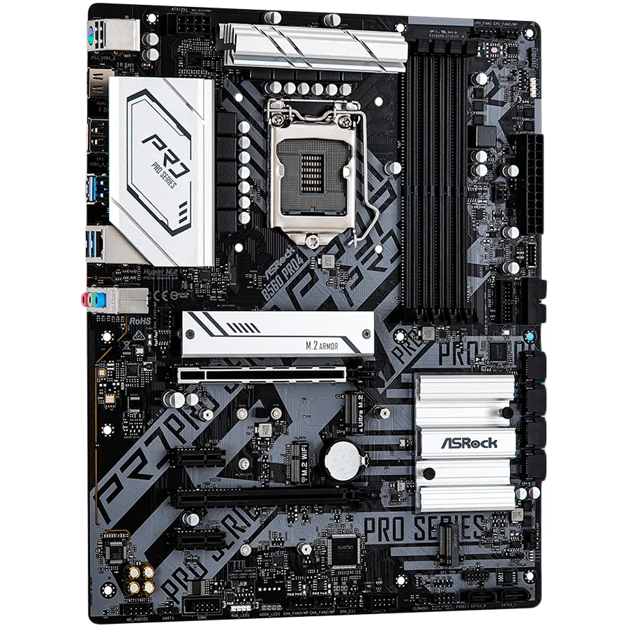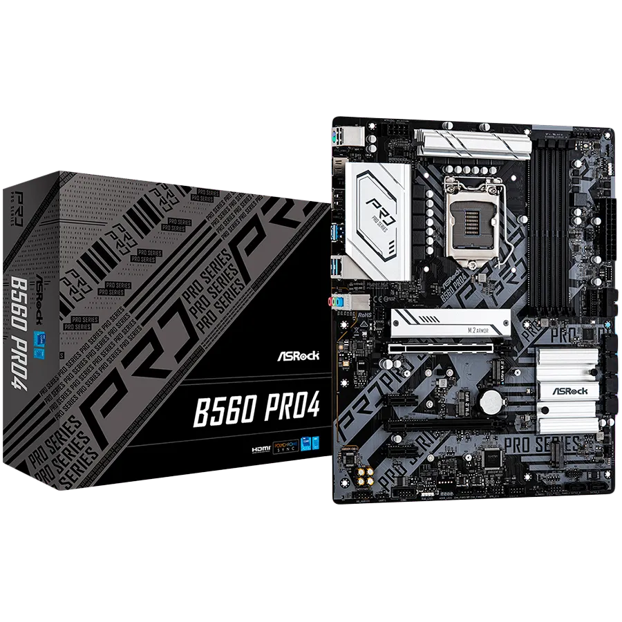 ASROCK Main Board Desktop B560 Pro4 (S1200, 4xDDR4, 4xPCIe x16, 2xPCIe x1, SATA III, 1 xM.2, 1 xUlraM.2, USB3.0, GLAN, HDMI, DP), Retail