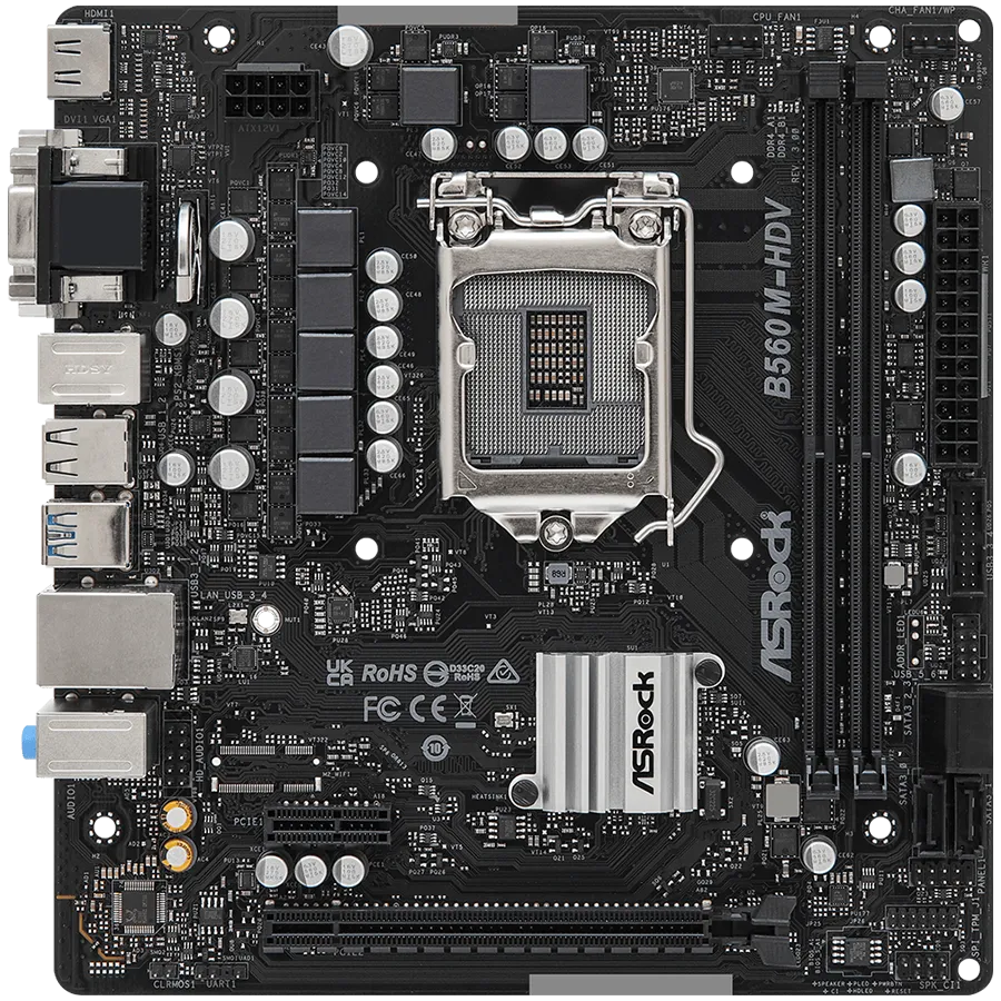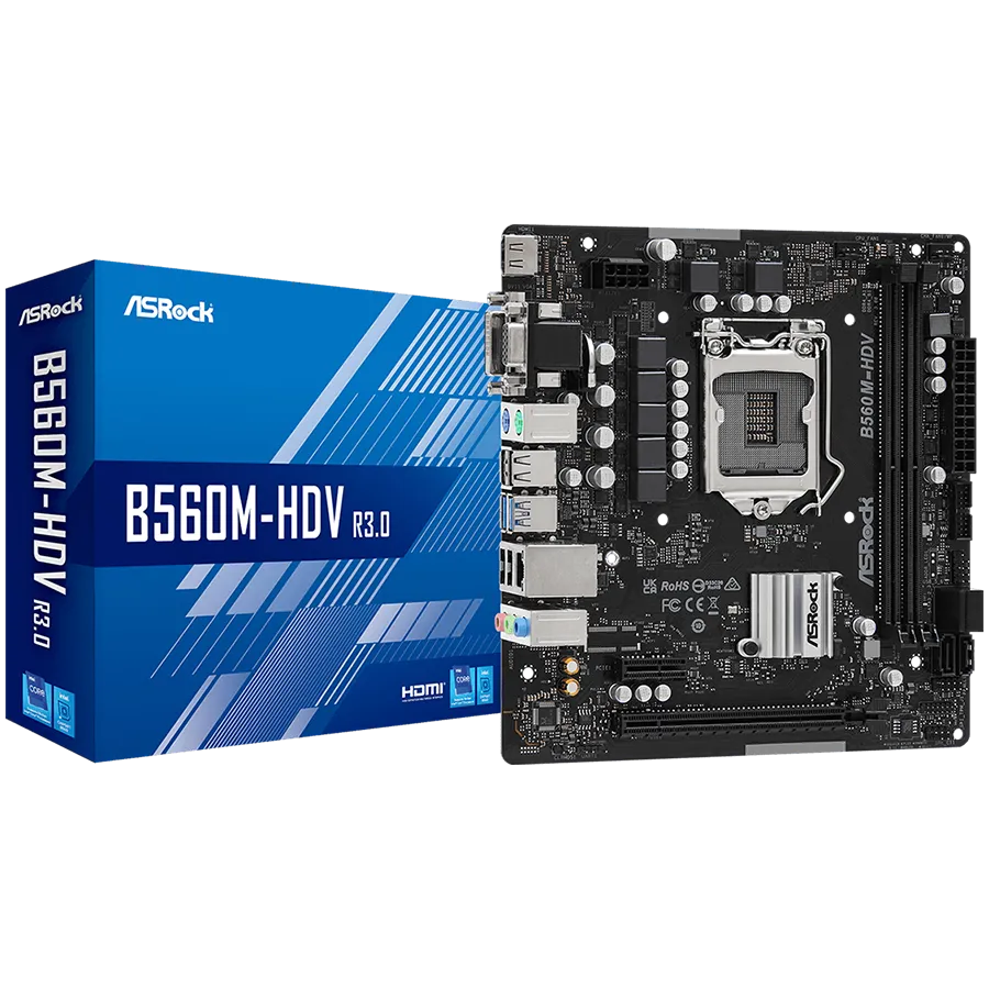ASROCK Main Board Desktop B560M-HDV (S1200, 2x DDR4, 1x PCIe 4.0 x16, 1x PCIe 3.0 x1, 4x SATA3, GLAN, 1x VGA, 1x DVI, 1x HDMI, 4x USB 3.2, 6x USB 2.0) mATX - B560M-HDV R3.0
