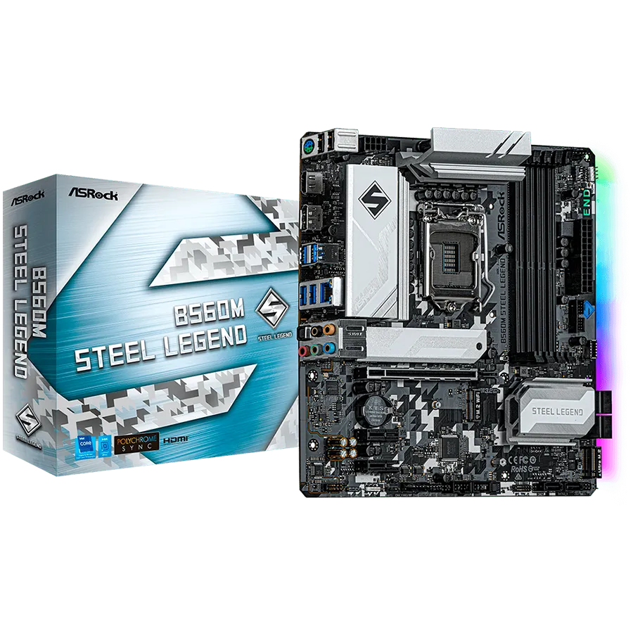 ASROCK Main Board Desktop B560M STEEL LEGEND (S1200, B560, 4xDDR4, 1xPCIe 4.0x16, 2xPCIe 3.0x1, 6xSATA, 1xM.2 PCIe Gen4x4, 1xM.2, 1x USB3.2 Gen2, 6x USB3.2 Gen1, 6x USB2.0, DP, HDMI, 2.5GLAN, POLYCHROME RGB, mATX, Retail)