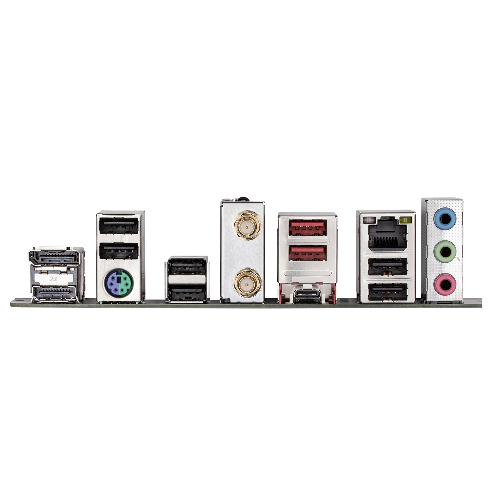 | USB: | CPU:, - 2 x USB 3.2 Gen 2 Type-A ports (red) on the back panel, - 1 x USB Type-C® port on the back panel, with USB 3.2 Gen 1 support, CPU+USB 2.0 Hub:, - 4 x USB 2.0/1.1 ports on the back panel, Chipset:, - 2 x USB 3.2 Gen 1 ports available through the internal USB header, - 1 x USB Type-C® port with USB 3.2 Gen 1 support, available through the internal USB header, - 4 x USB 2.0/1.1 ports (2 ports on the back panel, 2 ports available through the internal USB header), Chipset+USB 2.0 Hub:, - 4 x USB 2.0/1.1 ports available through the internal USB headers |