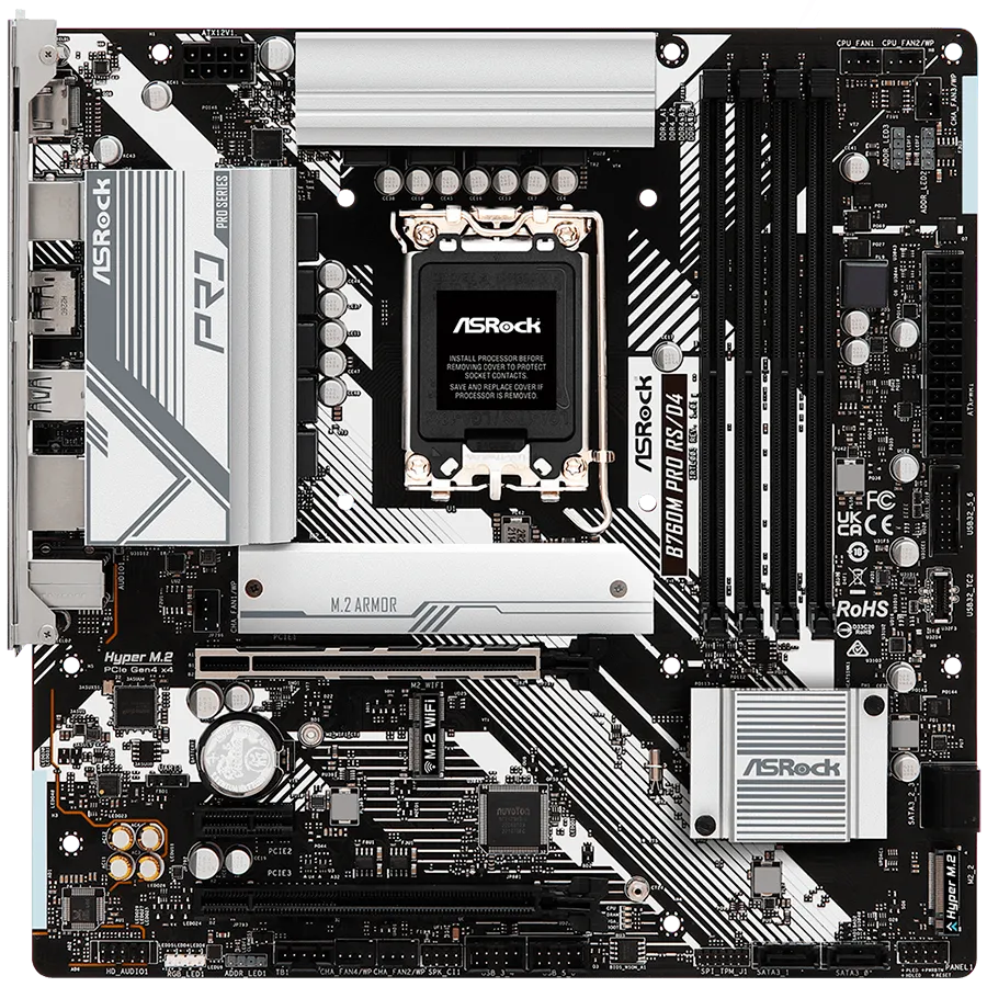 B760M PRO RS/D4 - ASROCK MB Desktop B760M Pro RS (S1700, 4x DDR4, 2x PCIe 4.0 x16, 1x PCIe 4.0 x1, 1x Hyper M.2 PCIe Gen4x4, 4x SATA3, 2x USB-C, 5x USB 3.2, 6x USB 2.0, 1x RJ-45 2.5GB, 1x HDMI, 1x DP, 7.1 HD Audio, micro ATX