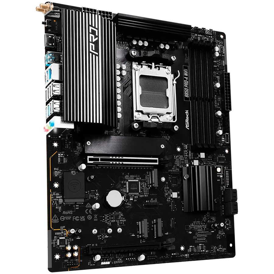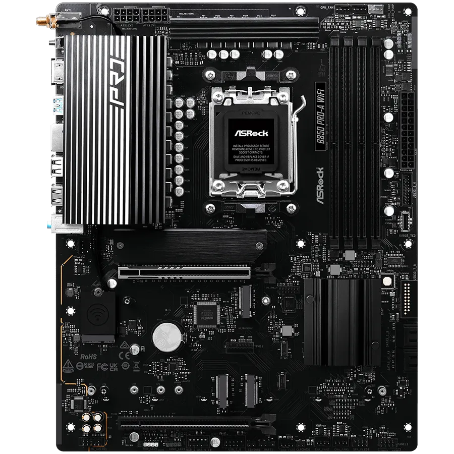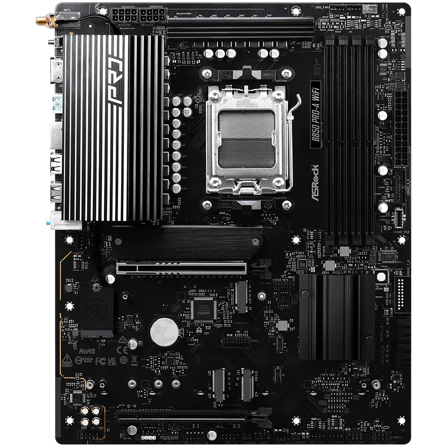 ASROCK Main board AMD B850 AM5, PCIe 5x16, 4x DDR5, 4x M.2, 2x SATA3 6Gb/s, 2.5Gb LAN, 802.11axe, 7.1 Ch audio, ATX - B850 PRO-A WIFI