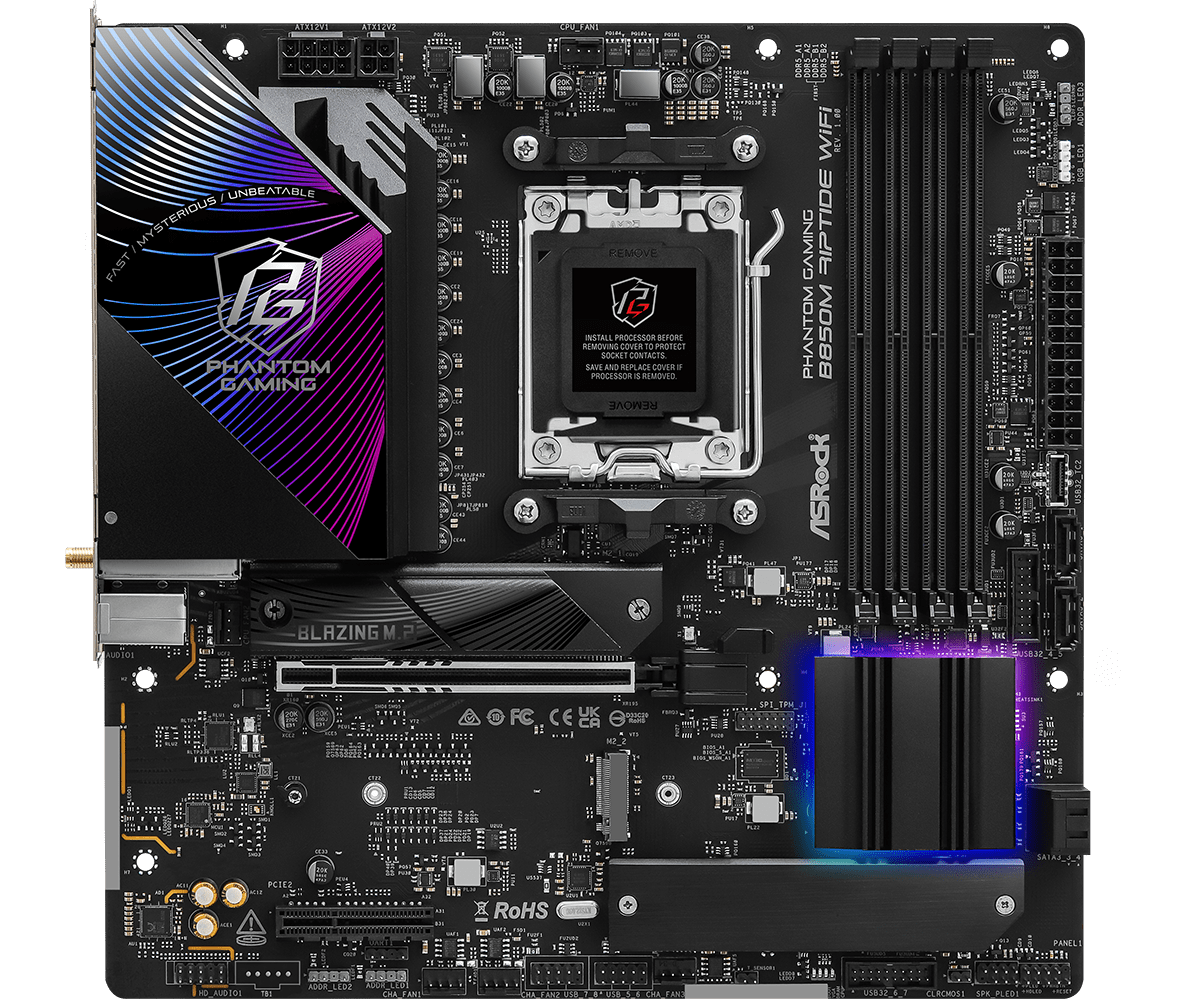 | Подд. процесори: | Supports AMD Socket AM5 Ryzen™ 9000, 8000 and 7000 Series Processors |