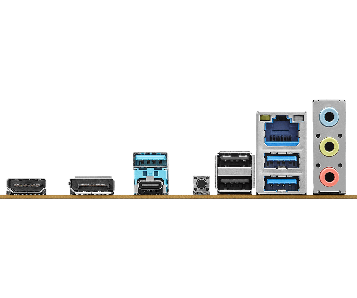 | I/O: | 2 x Antenna Mounting Points, 1 x HDMI Port, 1 x DisplayPort 1.4, 1 x USB 3.2 Gen2x2 Type-C Port (20 Gb/s), 3 x USB 3.2 Gen1 Ports, 2 x USB 2.0 Ports, 1 x RJ-45 LAN Port, 1 x BIOS Flashback Button, HD Audio Jacks: Line in / Front Speaker / Microphone |