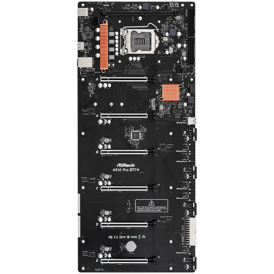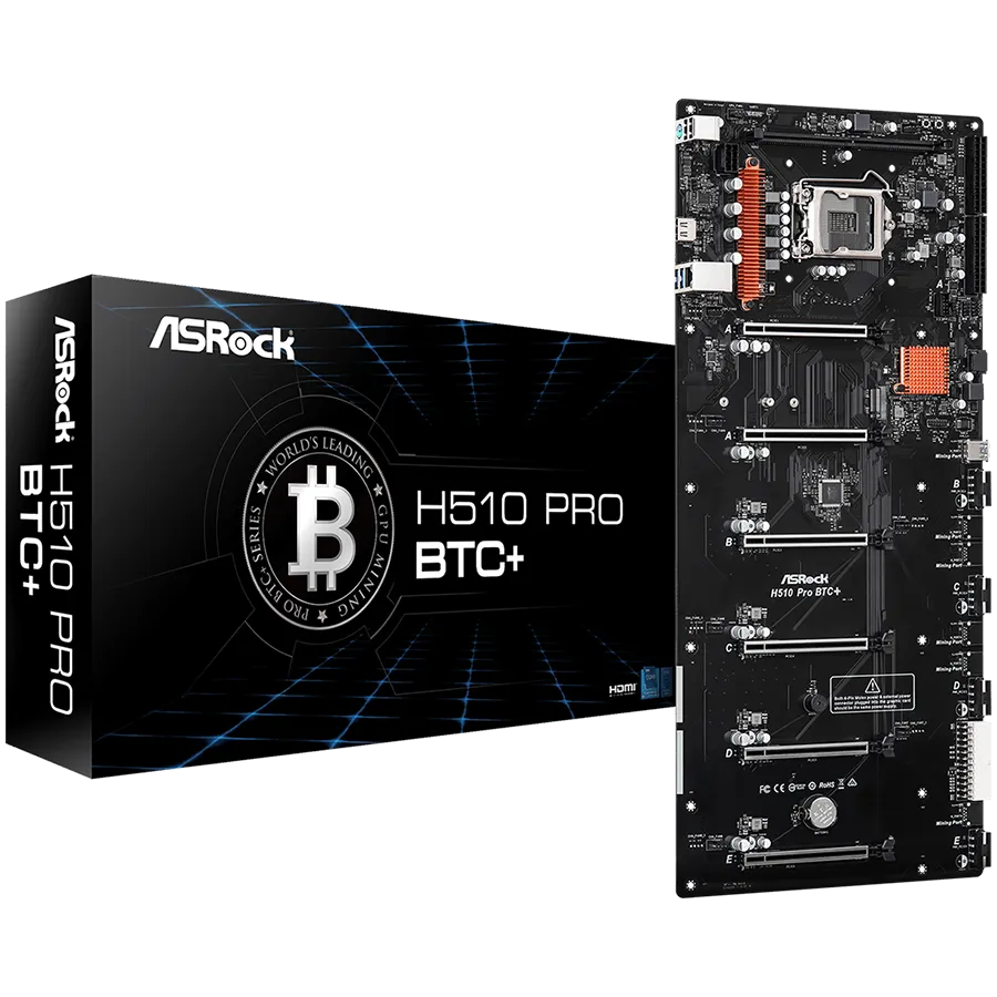 ASROCK Main Board Desktop H510 PRO BTC+ (s1200, H510, 1xDDR4, 6x PCI Ex3.0 x16, 1x Mining Port (M_Port1 at x1), 1xSATA, 1xM.2, 2x USB3.1 Gen1, 2x USB2.0, HDMI, GLAN, Power/Reset button, ATX, Retail) - H510 PRO BTC PLUS