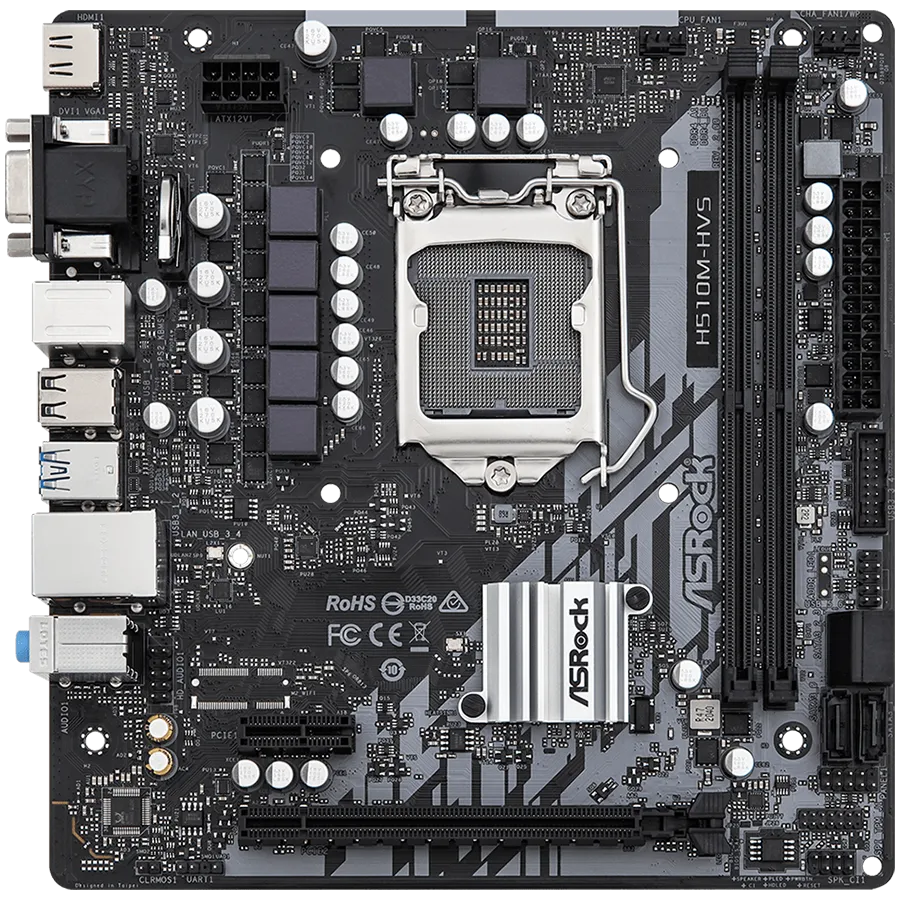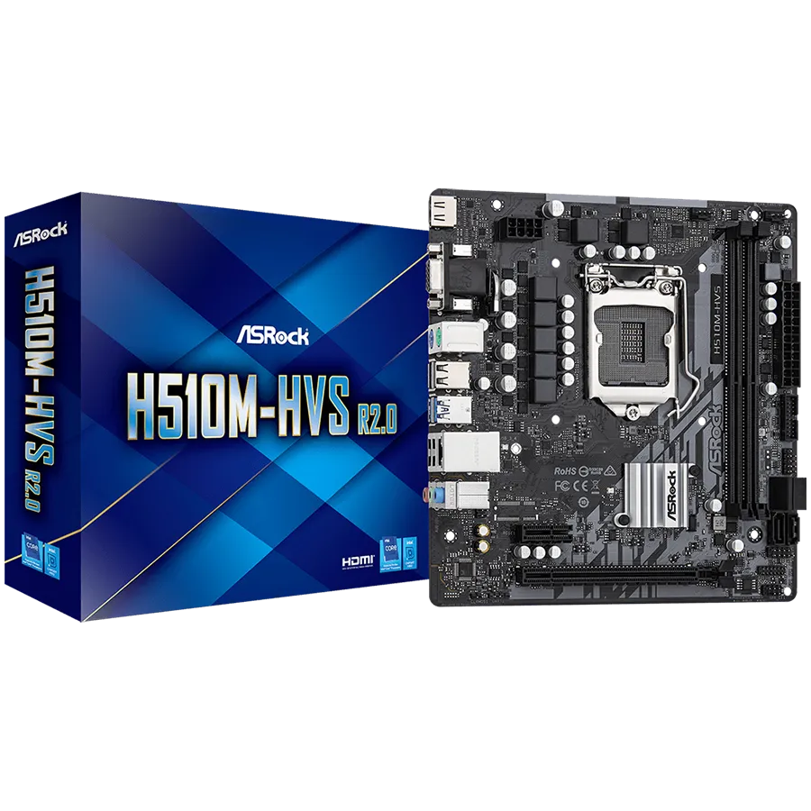 ASROCK Main Board Desktop H510 chipset (S1200, 2x DDR4, 1x PCIe 4.0 x16, 1x PCIe 3.0 x1, 4x SATA3, 4x USB 2.0, 2x USB 3.2, GLAN, 1x VGA, 1x HDMI)mATX, Retail - H510M-HVS R2.0