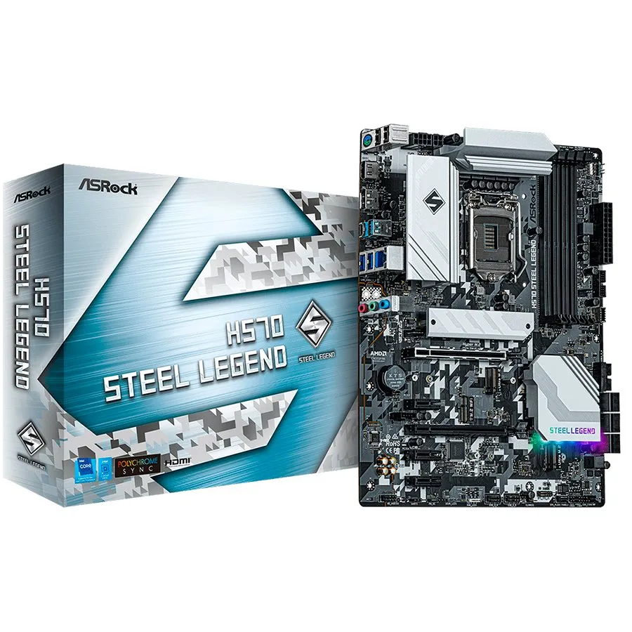 ASROCK Main Board Desktop Intel H570 chipset (S1200, 4x DDR4, 2x PCIe x16, 3x PCIe x1, 6x SATA3 , 2x M.2, 1x HDMI, 1x DP, 4x USB 3.2, 2x USB 2.0) ATX. - H570 STEEL LEGEND