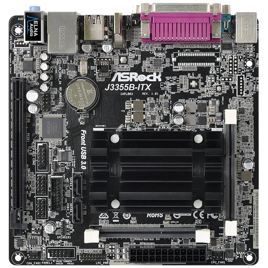 ASROCK Main Board Desktop (J3355 2.5GHz, DDR3 SO DIMM, 1xPCI 2.0x1,HDMI,VGA, 8ch, GLan,SATAIII,COM, LPT) Mini-ITX Box - J3355B-ITX_3Y