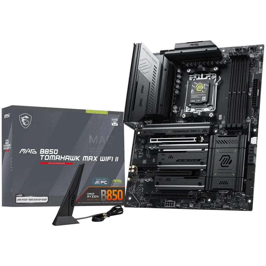 MSI MAG B850 TOMAHAWK MAX WIFI II, ATX, Socket AM5, 4x DDR5 Dual Channel DDR5 up to 8400(OC)MHz, 3x PCIe 3.0 x16 slot, 4x M.2 slot, 4x USB 2.0, 1x USB 5Gbps, 2x USB 10Gbps, 3x USB 10Gbps Type-C, HDMI, 7.1 HD Audio, 5G LAN, WiFI 7, BT, 3Y - MAG_B850_TOMAHAWK_MAX_WIFI_II