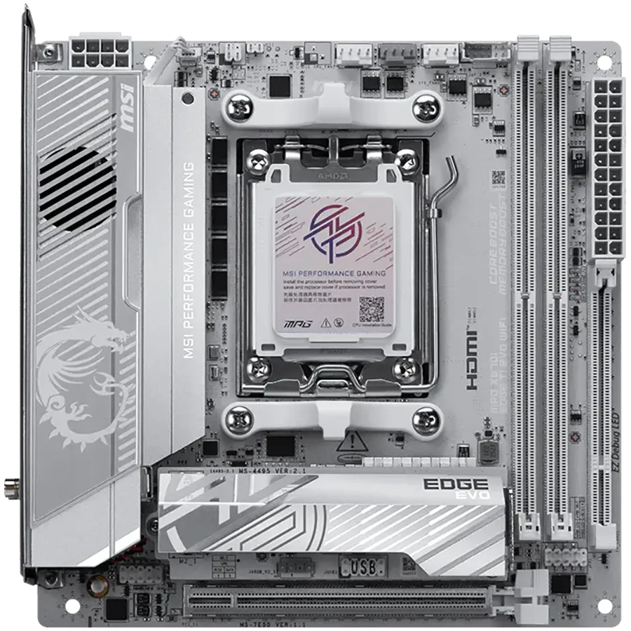 MSI MPG X870I EDGE TI EVO WIFI, mITX, Socket AM5, Dual Channel DDR5 10000+MHz (OC), 1x PCIe x16 slot, 3x M.2 slot, 1x HDMI, 5x USB 3.2 Gen 2, 1x USB 3.2 Gen 2 Type C, 2x USB 40Gbps Type C, Expansion Card, 7.1 HD Audio, 5Gbps LAN, WIFI 7, BT, 3Y - MPG_X870I_EDGE_TI_EVO_WIFI