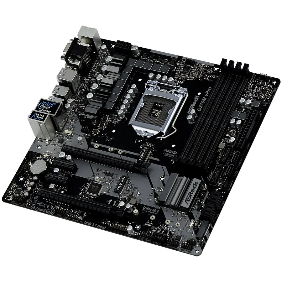 ASROCK Main Board Desktop Q370M (s1151, 4xDDR4,2xPCI 3.0x16, 2xPCI Ex1,SATA III,1xM.2,1xUlraM.2,USB3.0,USB3.1,GLAN,VGA,DVI,HDMI) mATX Retail - Q370M_VPRO
