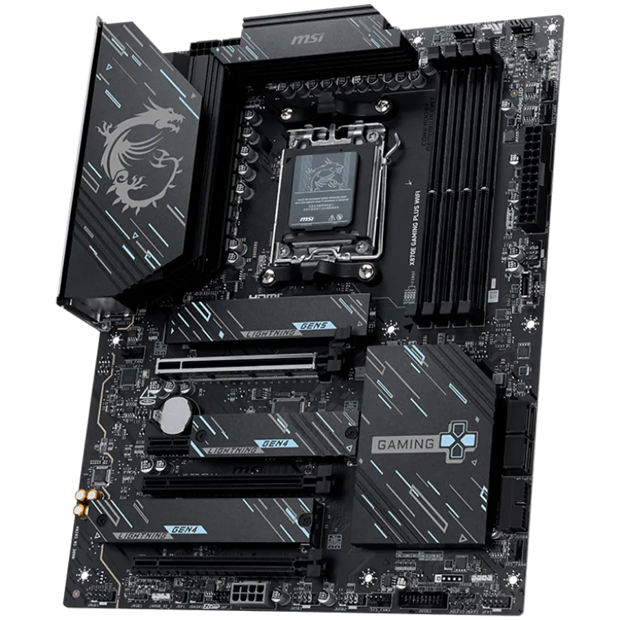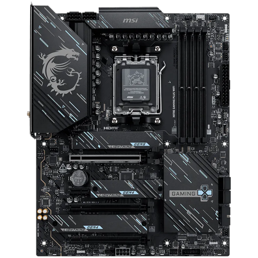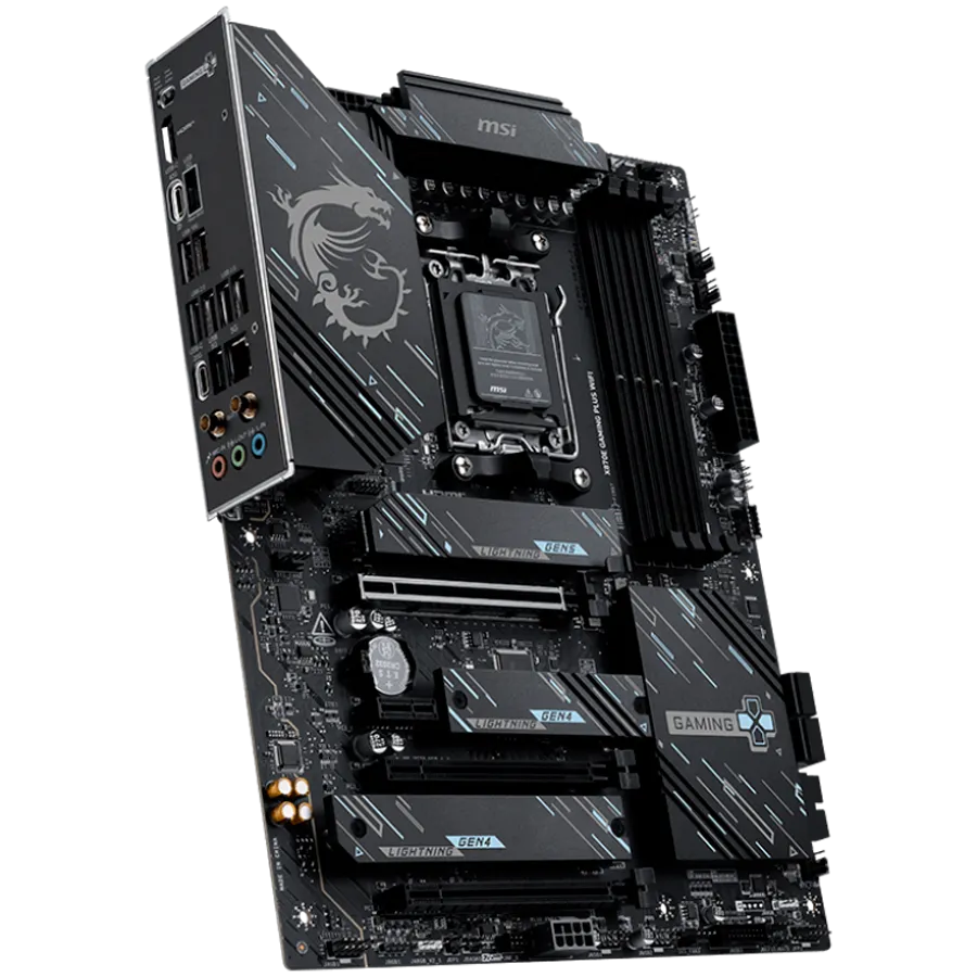 MSI X870E GAMING PLUS WIFI, ATX, Socket AM5, 4x DDR5 Dual Channel DDR5 up to 8200(OC)MHz, 3x PCIe x16 slot, 3x M.2 slot, 4x USB 2.0, 2x USB 5Gbps, 2x USB 10Gbps, 1x 20Gbps Type-C, 1x 40Gbps Type-C, HDMI, 7.1 HD Audio, 5G LAN, WiFI 7, BT, 3Y - X870E_GAMING_PLUS_WIFI