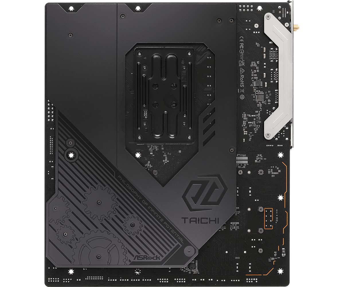 | Features: | Superb Productivity, - PCIe Gen5 (Graphics, M.2), - Dual Channel DDR5, - USB4 Type-C Ports (40 Gb/s), Rock-Solid Durability, - Server-Grade Low-Loss PCB, - 24+2+1 Power Phase, 110A SPS for VCore+SOC with Enlarged Heatsink Armor, - Flexible Integrated I/O Shield, - 20K Long-lasting Black Caps (high quality and conductive polymer capacitors), Ultrafast Connectivity, - 5G LAN, 802.11be Wi-Fi 7 Module, - ASRock Lightning Gaming Ports, EZ Update, - BIOS Flashback Button, - ASRock Auto Driver Installer |