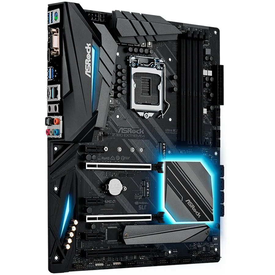 | Mainboard Features: | Nvidia SLI AMD Quad CrossFireX AMD 3-Way CrossFireX Technology NVIDIA Quad SLI AMD CrossFireX Intel Optane Memory Ready NVMe Support Headset Amplifier Nvidia NVLink RGB Polychrome |