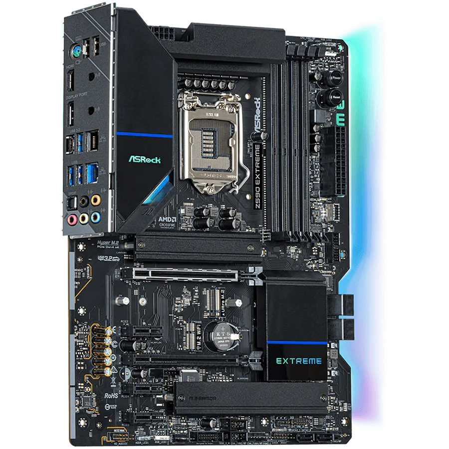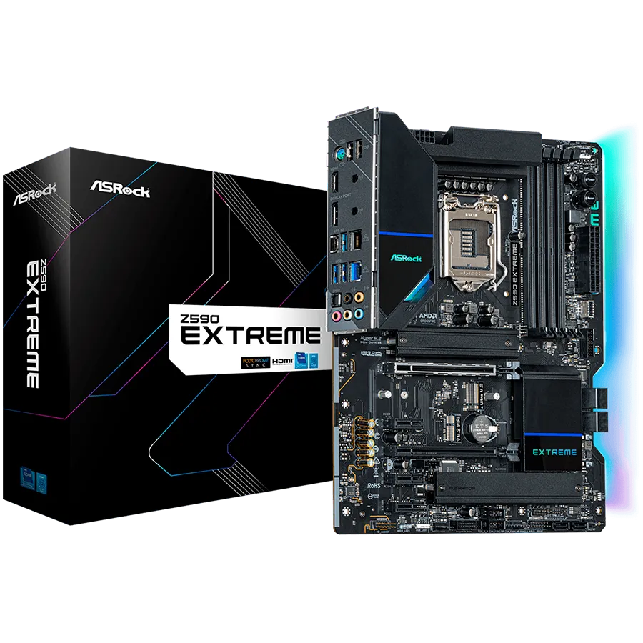ASROCK Main Board Desktop Z590 EXTREME (S1200, Z590, 4xDDR4, 1xPCIe 4.0x16, 1xPCIe 3.0x16, 3xPCIe 3.0x1, 6x SATA, 1x M.2 PCIe Gen4x4, 2xM.2, 2x USB3.2 Gen2, 6x USB3.2 Gen1, 6xUSB2.0, DP, HDMI, 2.5GLAN, SVGA Holder, ATX, Retail)