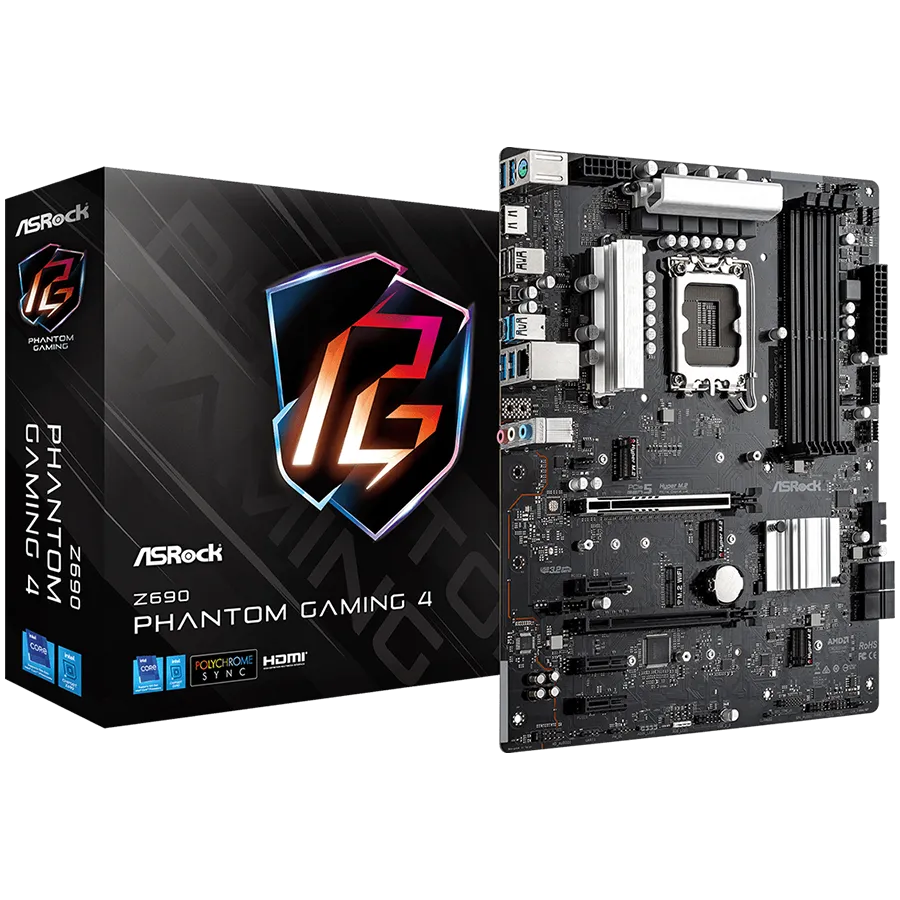 ASROCK Main Board Desktop Z690 Phantom Gaming 4 (S1700, Z690, 4x DDR4, 2x PCIe x16, 3x PCIe x1, 4x SATA3 6.0Gb/s, 2x m.2 PCIe Gen4x4, RAID 0,1,5,10, 10x USB 3.2, 1x USB-C 1x RJ-45 2.5G Lan, HDMI, DP, ATX, Retail