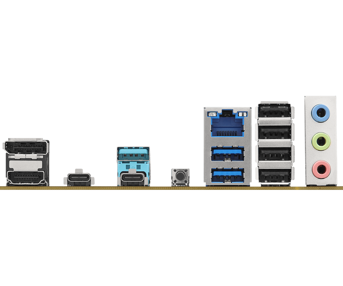 | I/O: | CPU, - 1 x Thunderbolt™ 4 Type-C (Rear), - 1 x USB 3.2 Gen2x2 Type-C (Rear) Chipset:, - 1 x USB 3.2 Gen2x2 Type-C (Front), - 1 x USB 3.2 Gen2 Type-A (Rear), - 6 x USB 3.2 Gen1 (2 Rear, 4 Front), - 8 x USB 2.0 (4 Rear, 4 Front), - 2 x Antenna Mounting Points, - 1 x HDMI Port, - 1 x DisplayPort 1.4, - 1 x Thunderbolt™ 4 Type-CPort (40 Gb/s for USB4 protocol, 40Gb/s for Thunderbolt™ protocol)*, - 1 x USB 3.2 Gen2x2 Type-C Port (20 Gb/s), - 1 x USB 3.2 Gen2 Type-A Port (10 Gb/s), - 2 x USB 3.2 Gen1 Ports, - 4 x USB 2.0 Ports, - 1 x RJ-45 LAN Port, - 1 x BIOS Flashback Button, - HD Audio Jacks: Line in / Front Speaker / Microphone |