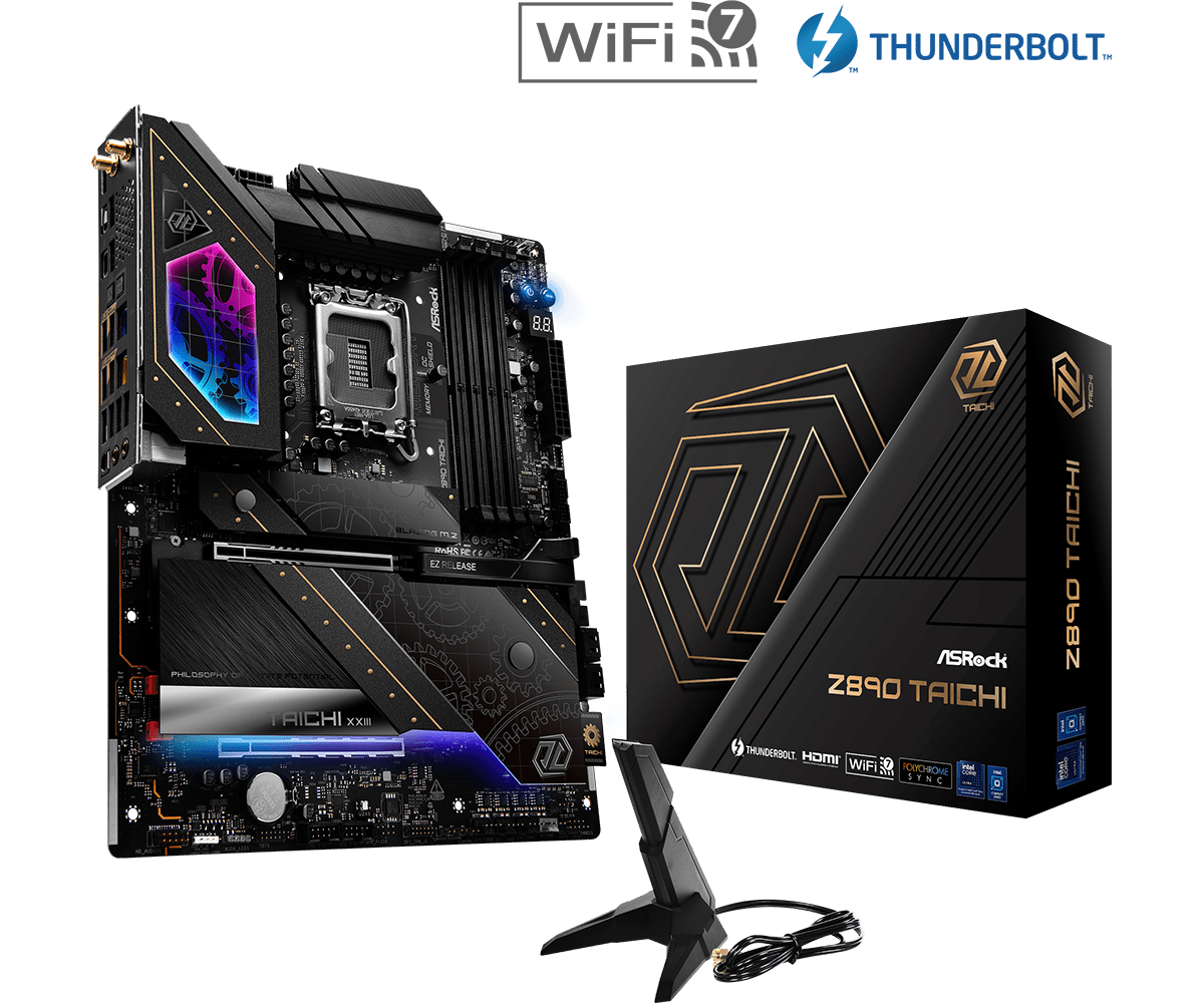 | Features: | Superb Productivity, - PCIe Gen5 (Graphics, M.2), - Dual Channel DDR5, - Thunderbolt™ 4 Type-C Ports (40 Gb/s), Rock-Solid Durability, - Server-Grade Low-Loss PCB, - 20+1+2+1+1 Power Phase, 110A SPS for VCore with Enlarged Heatsink Armor, - Memory OC Shield, - Flexible Integrated I/O Shield, - 20K Long-lasting Black Caps (high quality and conductive polymer capacitors), Ultrafast Connectivity, - 5G LAN, 2.5G LAN, 802.11be Wi-Fi 7 Module, - ASRock Lightning Gaming Ports, EZ Update- BIOS Flashback Button, - ASRock Auto Driver Installer |