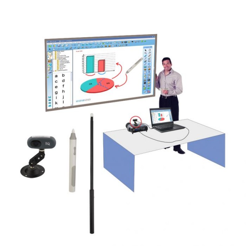 IQ board LT превръща почти всяка плоска повърхност в интерактивна дъска. Устройството прави лекциите, запомнящи се и ефективни. Дава възможност на потребителите да работят върху традиционни бели дъски, стени, плотове и дори стъкло. Софтуерът е съвместим с Windows 7, VISTA, XP, 2000. Работи с всички видове проектори. Инсталацията е леснa и бърза.