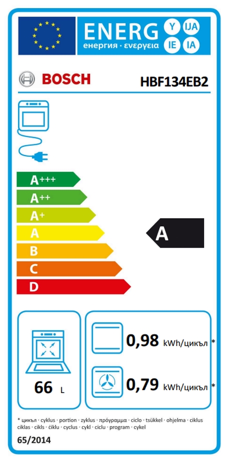Bosch HBF134EB2, SER2, 3D HotAir, EcoClean Direct, 66 l, Telescopic guides on 1 level, LED display with sinking buttons, 7 HM, Energy efficiency A, Black
