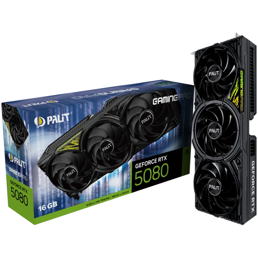 PALIT GeForce RTX 5080 GamingPro V1 16GB GDDR7, 256 bit, 1x HDMI 2.1b, 3x DP 2.1b, 3 Fan, 1x 16-pin pwr connector, 850W, 331.9 x 127.1 x 60 mm, NE75080019T2-GB2031Y