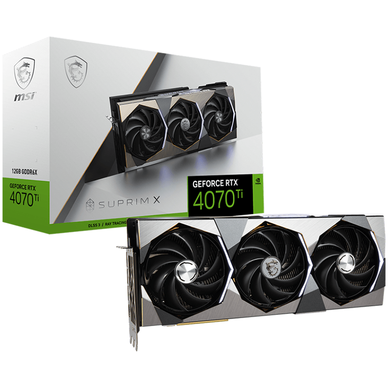 MSI Video Card Nvidia GeForce RTX 4070 Ti SUPRIM X 12G, 12GB GDDR6X, 192bit, Effective Memory Clock: 21000MHz, Boost: 2775 MHz, 7680 CUDA Cores, PCIe 4.0, 3x DP 1.4a, HDMI 2.1a, RAY TRACING, Triple Fan, 750W Recommended PSU, 3Y - RTX_4070_TI_SUPRIM_X_12G
