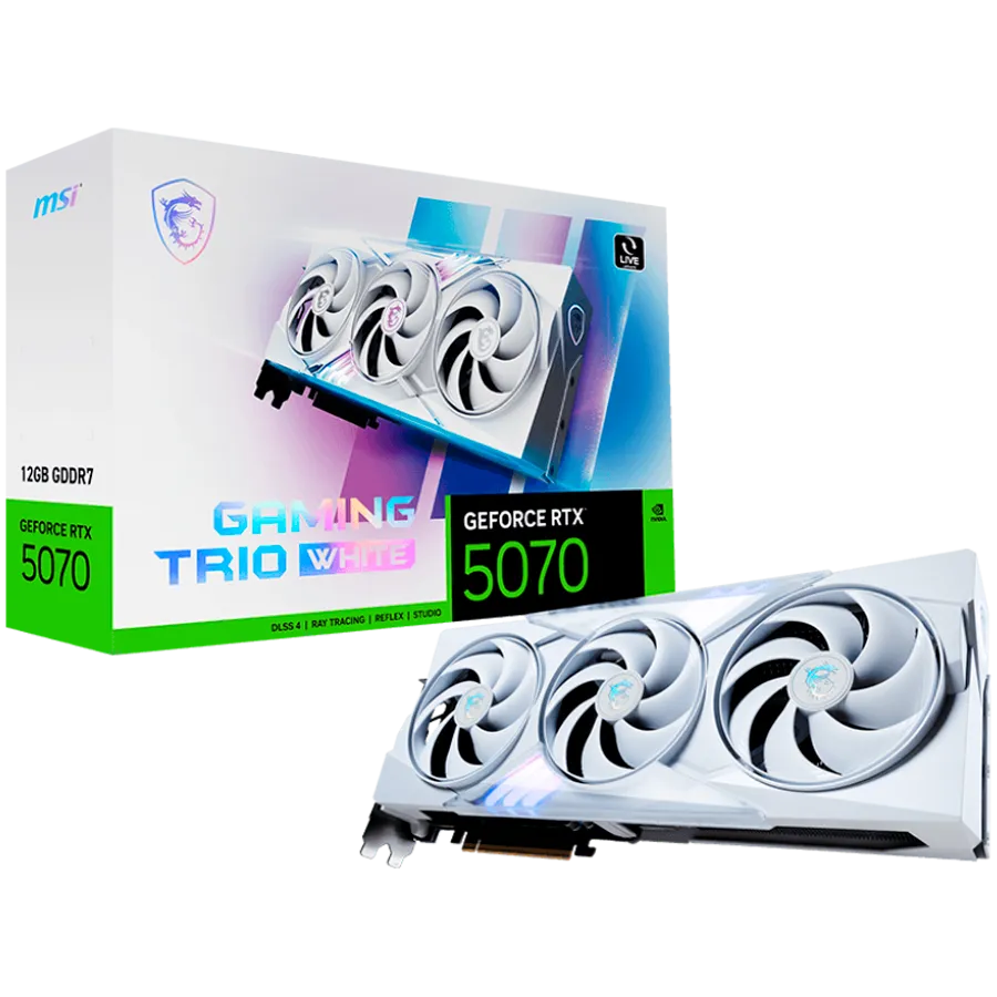 MSI Video Card Nvidia GeForce RTX 5070 12G GAMING TRIO White, 12GB GDDR7, 192bit, Effective Memory Clock: 28000MHz, Boost: 2512 MHz, 6144 CUDA Cores, PCIe 5.0, 3x DP 2.1b, HDMI 2.1b, RAY TRACING, Triple Fan, 1x16pin, 650W Recommended PSU, 3Y - RTX_5070_12G_GAMING_TRIO_WHITE