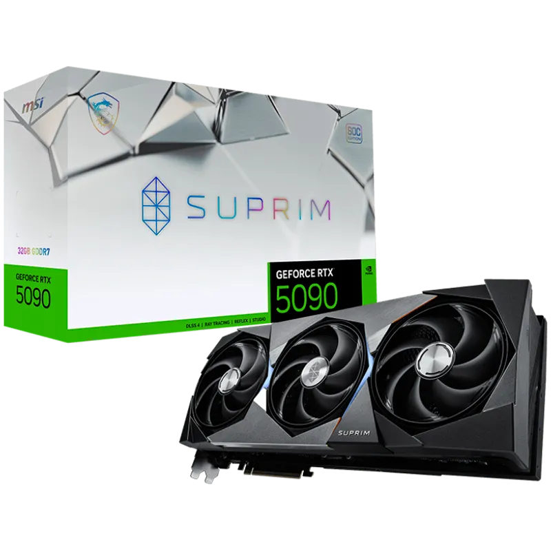 MSI Video Card Nvidia GeForce RTX 5090 32G SUPRIM SOC (32GB GDDR7/512bit, PCI-E Gen 5 x16, 3xDP, 1xHDMI, Recommended PSU 1000W, 3 fans) - RTX_5090_32G_SUPRIM_SOC