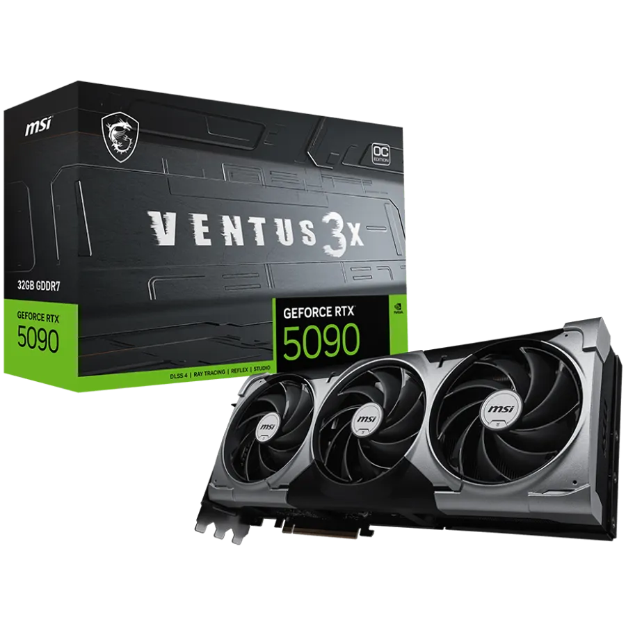 MSI Video Card Nvidia GeForce RTX 5090 32G VENTUS 3X OC, 32GB GDDR7, 512bit, Effective Memory Clock: 28000MHz, Boost: 2437 MHz, 21760 CUDA Cores, PCIe 5.0, 3x DP 2.1b, HDMI 2.1b, RAY TRACING, Triple Fan, 1x16pin, 1000W Recommended PSU, 3Y - RTX_5090_32G_VENTUS_3X_OC