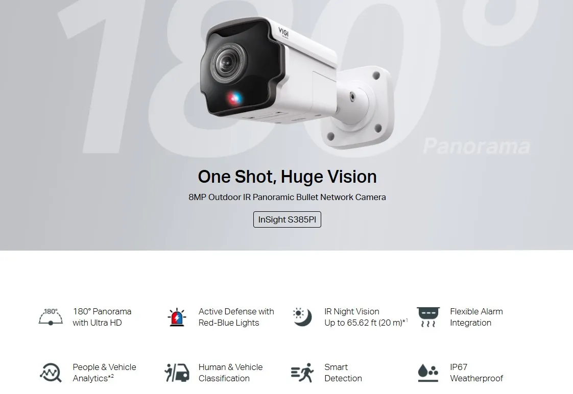 8MP външна IR панорамна Bullet мрежова камера TP-Link VIGI InSight S385PI