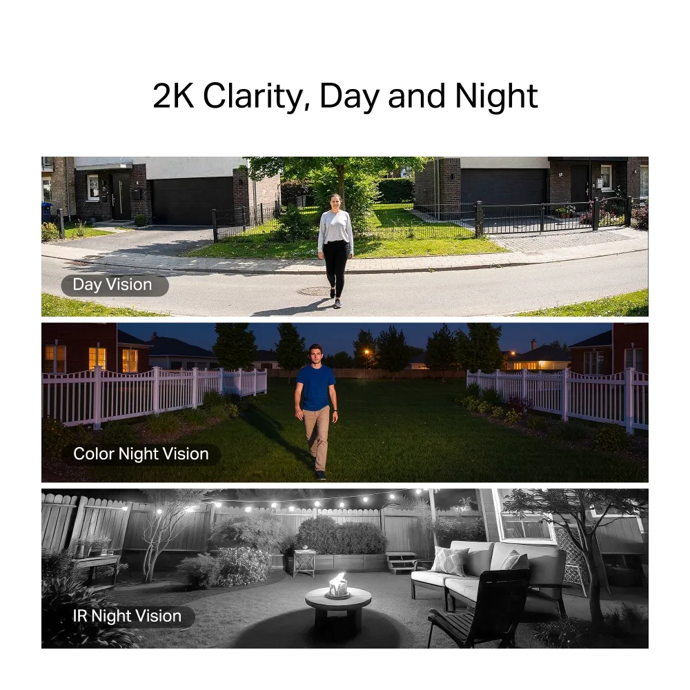 - 2K HD с цветно нощно виждане: Виждайте ясно лицата и детайлите, дори през нощта, с вграден прожектор, който светва, когато бъдат засечени хора.