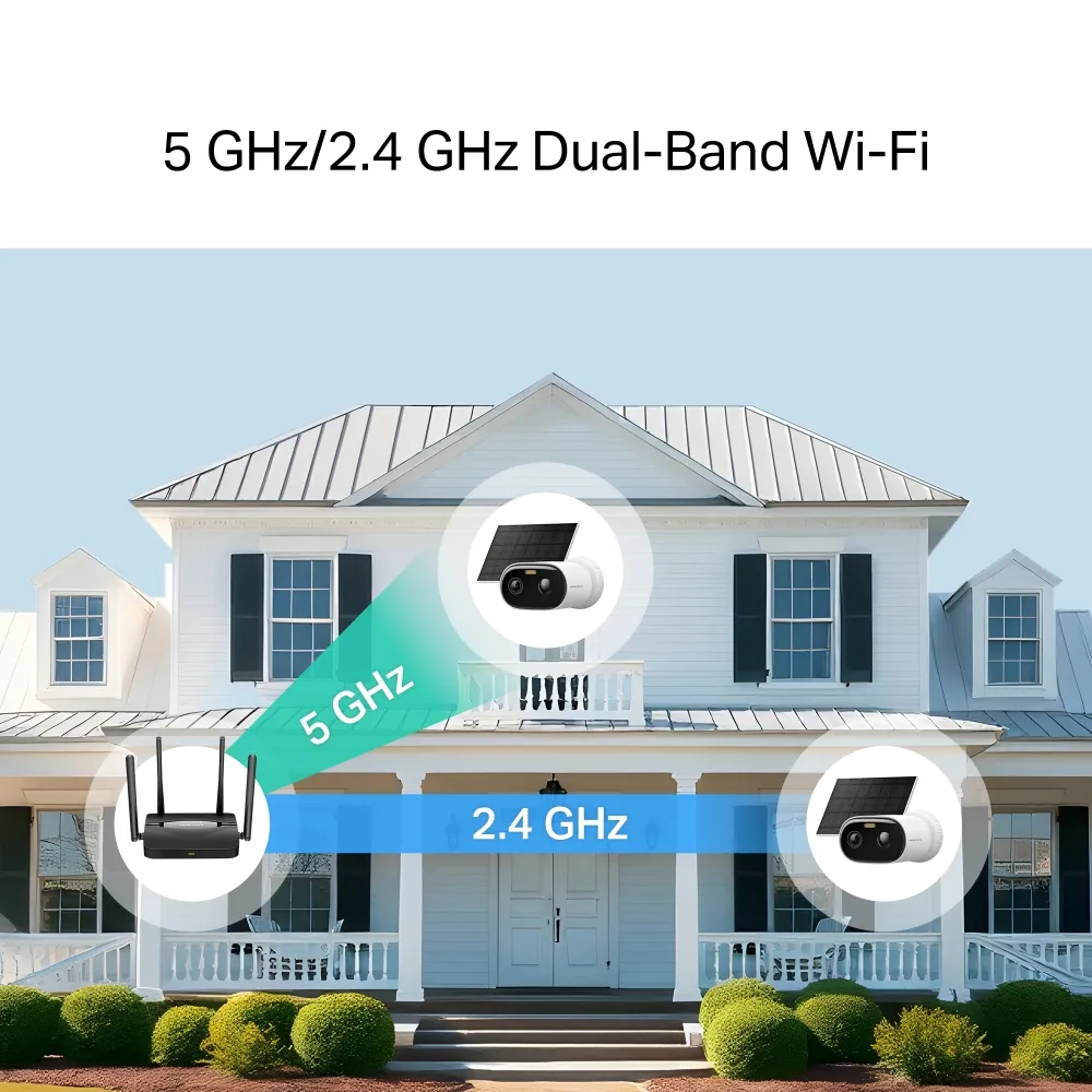 - Остава свързан, независимо дали вали или слънце: Двубандовият Wi-Fi осигурява стабилна свързаност, а защитата IP65 е устойчива на всякакви метеорологични условия.