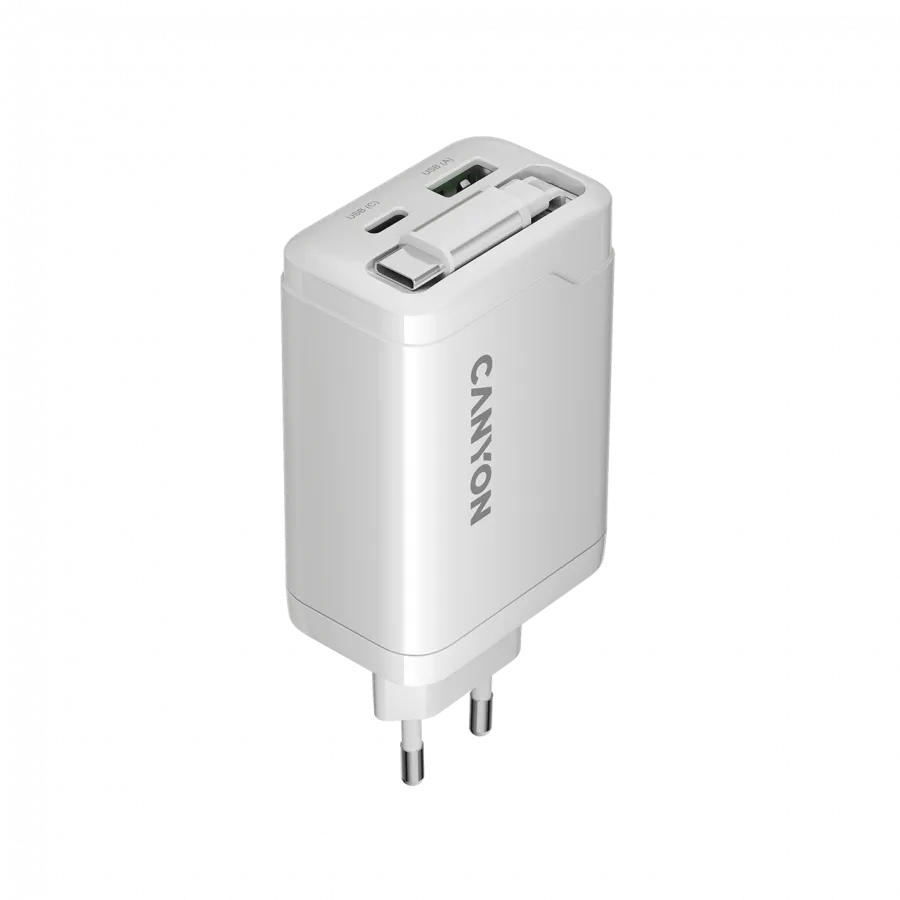 - CANYON charger OnCharge 65RC Build-In Cable USB-C 65W 1xPD 1xQC EU White