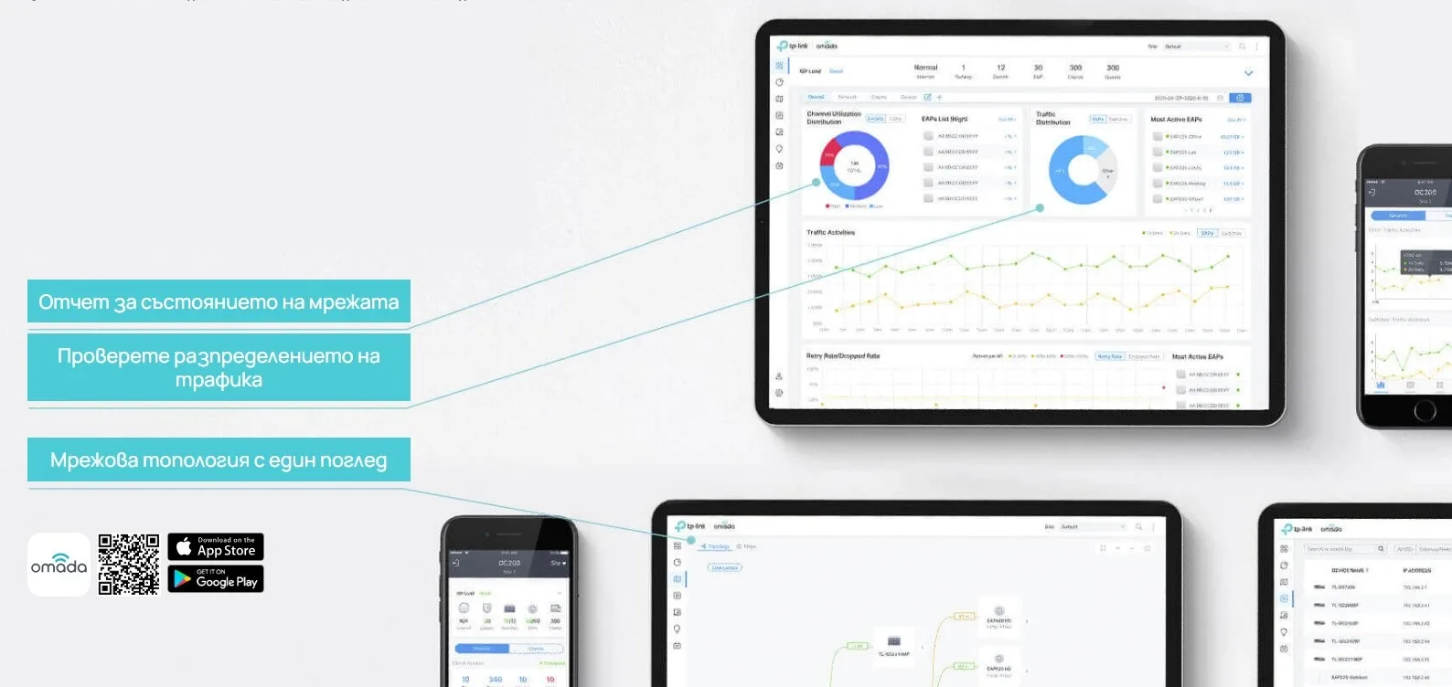 - Централизирано управление: До 100 Omada точки за достъп, 20 JetStream комутатора и 10 Omada рутера.