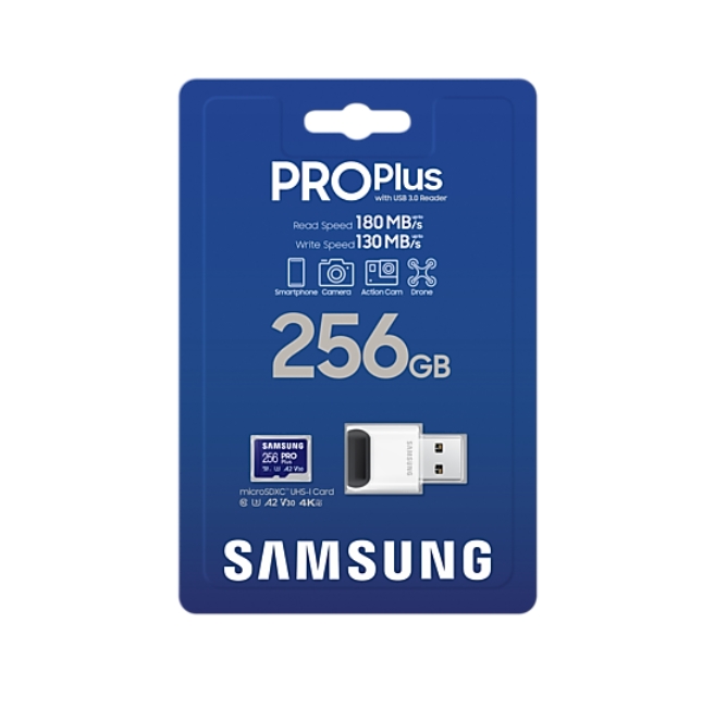 Samsung 256GB micro SD Card PRO Plus with USB Reader, UHS-I, Read 180MB/s - Write 130MB/s - MB-MD256SB/WW