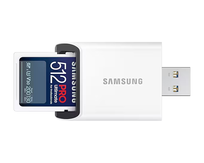 Samsung 512GB SD Card PRO Ultimate with USB Reader, U3, V30, Read 200MB/s - Write 130MB/s - MB-SY512SB/WW
