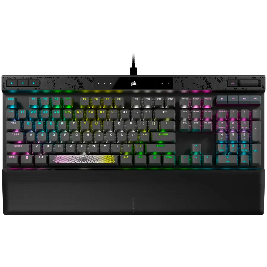 | Keyboard Features: | On-board Memory Height Adjustment Detachable Palm Rest Plug And Play iCUE Compatible Anti-Ghosting Technology Braided Fiber Cable Tournament Mode Switch 8000 Hz HyperPolling NKRO support Aluminum Top Plate RGB Backlight Rapid trigger On-board lighting profiles Adjustable Actuation Internal Foam FlashTap Technology WIN Lock CORSAIR AXON Hyper-Processing Technology |